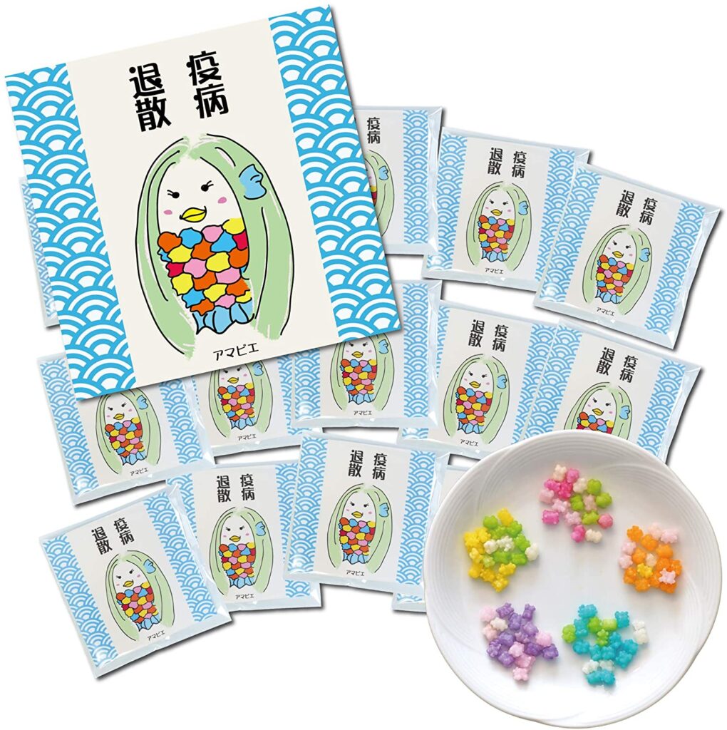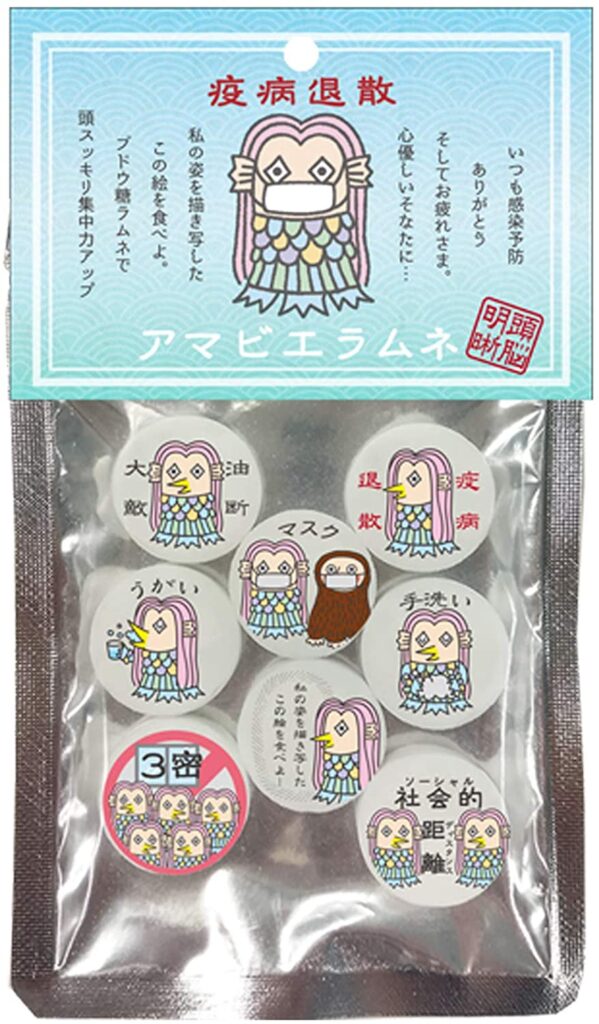 最初は、アマビエのかわいいイラストが描かれたブドウ糖ラムネ。
