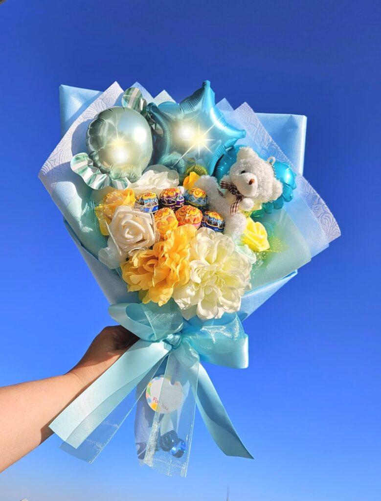 デザインが豪華なものや、コンパクトで持ち運びやすいもの、チュッパチャップスがたくさん入ったものなど、さまざまな「キャンディーブーケ」が展開されています。