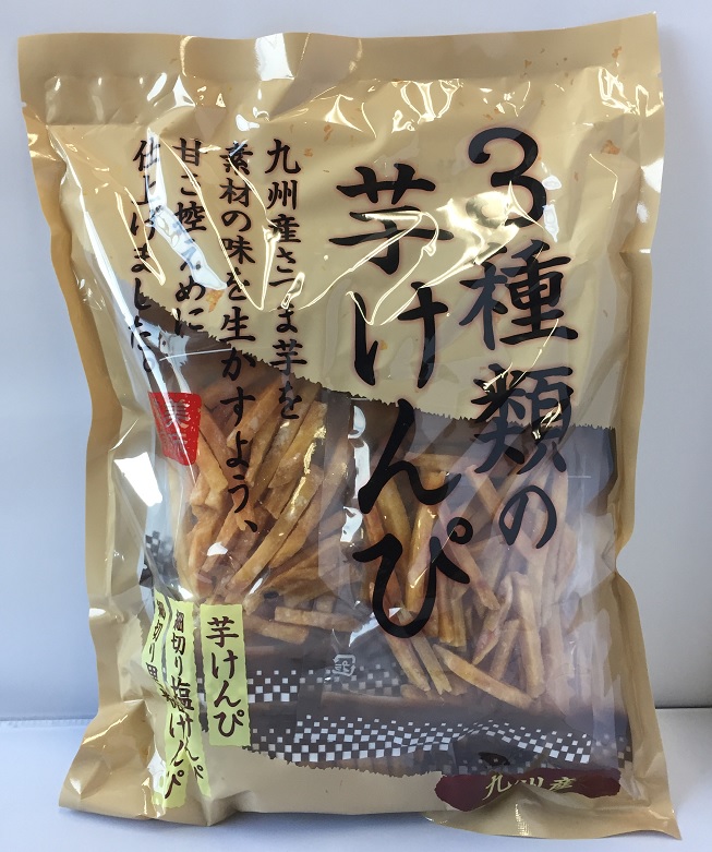 芋けんぴ・黒糖けんぴ・塩けんぴの3種類の味を楽しむことができます。