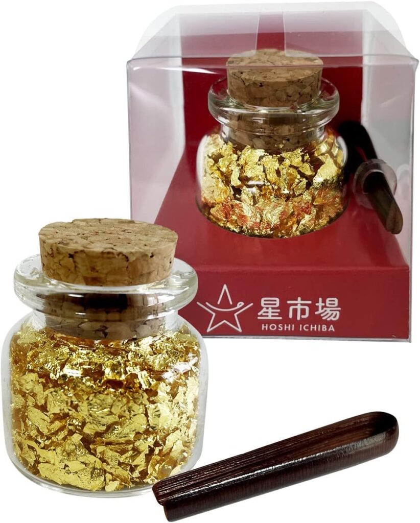少量ずつ使いやすいものや、粒が大きいもの、おしゃれな小瓶入りのものなど、さまざまな「食用金箔」が販売されています。