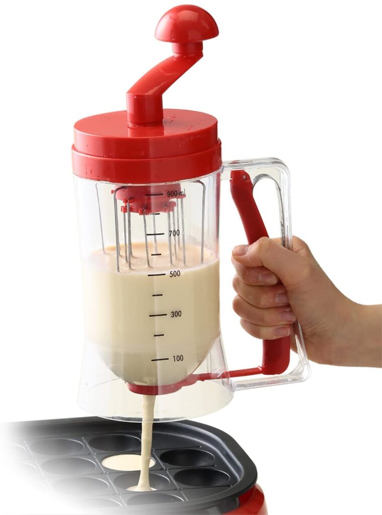 とくにたこ焼きやパンケーキなどを作るときにとくに使い勝手の良い、混ぜる&注ぐが一台でできるアイディア商品です。